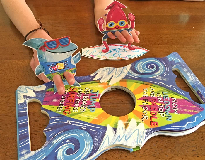 You don't have to wait for Summer to enjoy some fun in the sun! Get ready for big waves with these MOVE! beach buddies. Sam Shark and Sue Squid are ready to join for a surFUN activity! First you will need to download the activity page, print it and follow the instructions. (We recommend using card stock paper for durability). Grab your board, buddies and MOVE! book to hang 10 on some BIG book waves!